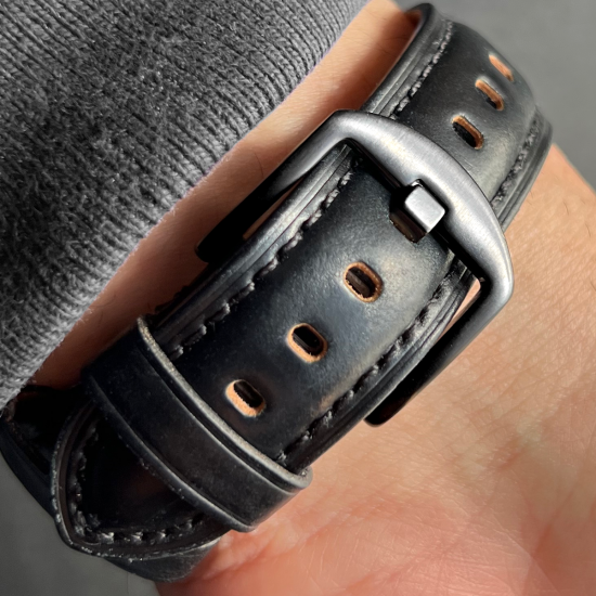 シェルコードバン(ホーウィン社製品)、ステンレススチール(バックル)、チタニウム(ラグ)、