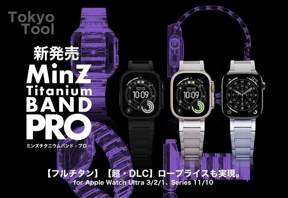 【先行ご予約・10月中旬入荷予定在庫分】MinZ Titanium Band Pro for Apple Watch ナチュラルチタニウム 49mm/46mm